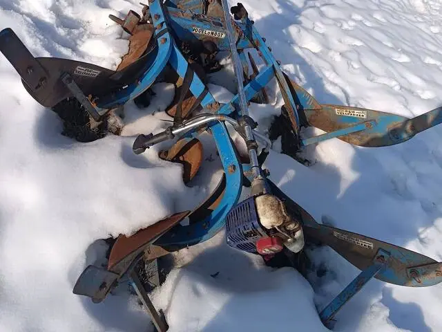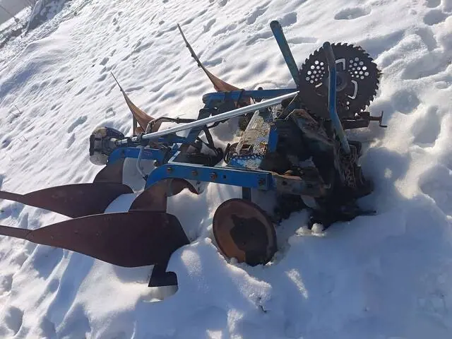 Dau un plug reversibil bun, gata de agățat la tractor și băgat la arat. Utilajul se prezintă bine și își face treaba pe câmp fără probleme.