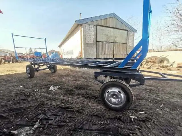 Vând trailer/platformă specializată pentru transportul baloților, în stare foarte bună de funcționare. Utilajul se remarcă printr-un șasiu extrem de solid și o platformă rezistentă, fiind pregătit pentru sarcini grele.