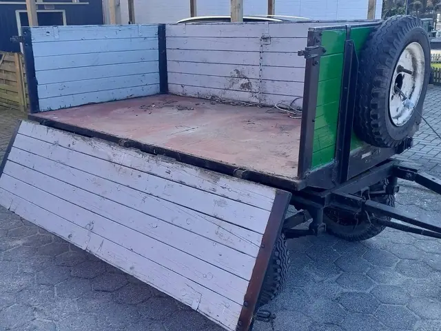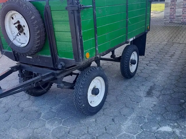 De vânzare remorcă agricolă, ideală pentru tractoare mici (motocultoare sau tractoare de putere mică/mijlocie). Remorca este dotată cu sistem de frânare inerțial (frână din proțap).